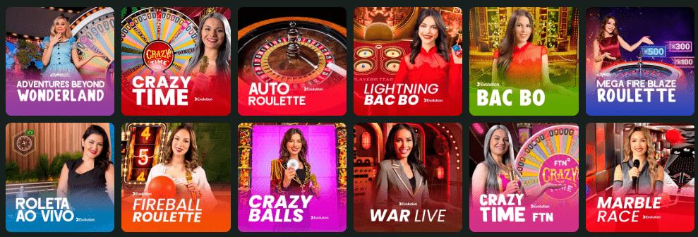 Na modalidade de cassino ao vivo, os jogadores encontram uma seleção completa dos clássicos títulos da cultura de cassino, como blackjack, poker, roleta, bacará e dados, até propostas que caíram nas graças dos jogadores brasileiros, como os games shows, fornecidos por provedores como Evolution, PlayTech e Pragmatic, que são empresas líderes nos segmentos dessa modalidade, que são donos dos melhores jogos ao vivo do mercado atual.