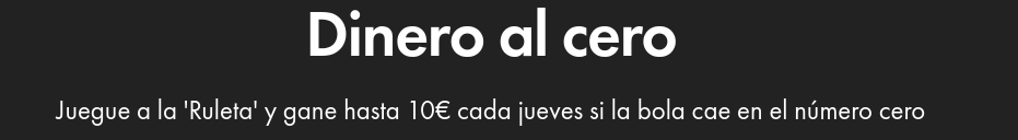 El Dinero al cero te permite conseguir hasta €10 en la ruleta. Para ello, debes apostar en Bet365 un mínimo de 1€. Obtendrás €2 en efectivo si la bola cae en el cero en ese giro.
