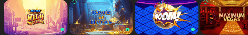Algunos slots que puedes probar son Mega Wild Pistolero, Book of Horus, Boom y Maximum Vegas.