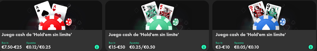 El póker es uno de los juegos de cartas más populares en los casinos, y podrás disfrutarlo en la sección «Póquer» de Bet365, con varias mesas de Hold’em y Twister, además de torneos.