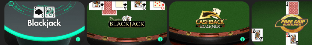 En Bet365, puedes probar tu suerte y obtener el 21 para vencer a la mesa en diversos juegos de Blackjack en su catálogo, como Blackjack, Premium Blackjack, Cashback Blackjack o Free Chip Blackjack.