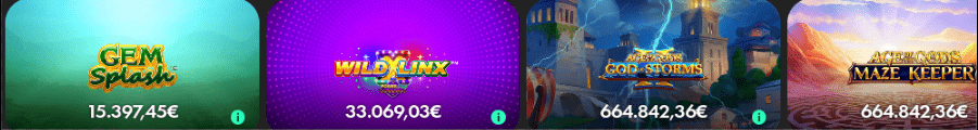 Algunos juegos disponibles son Gem Splash, Wild Linx, Age of the Gods: God of Storms y Age of the Gods: Maze Keeper.